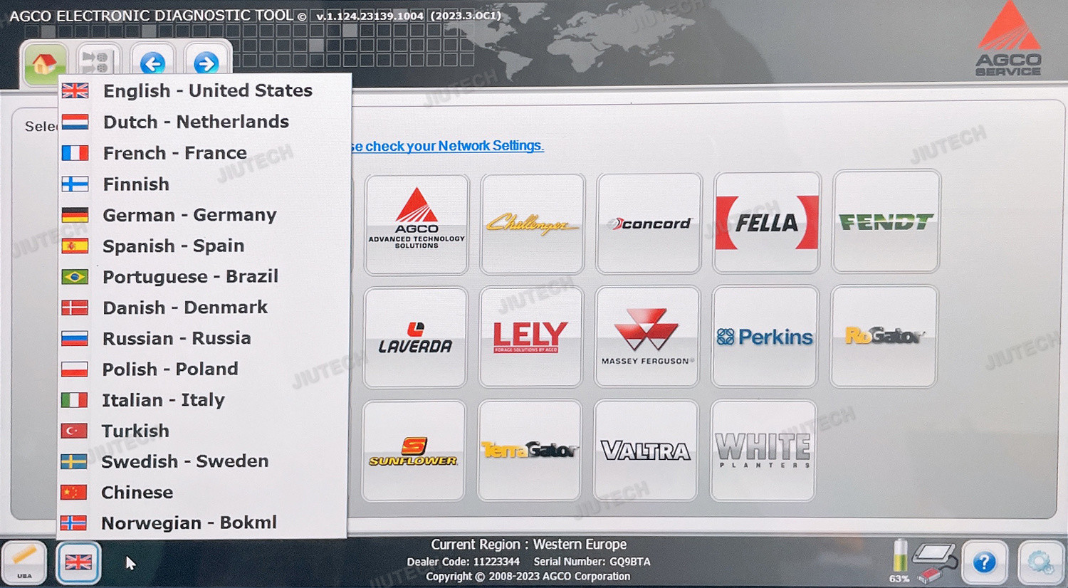 | সমর্থন | agco edt ইলেকট্রনিক ডায়াগনস্টিক টুল | ভাষা | বহুভাষী ডায়াগনস্টিক সরঞ্জাম |